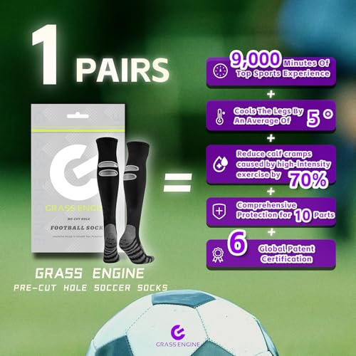 • Supreme Support: Our innovative football socks delivers essential support to key areas; The size and placement of the grip socks soccer's hole have been meticulously determined, support the foot, enhance air circulation and cooling