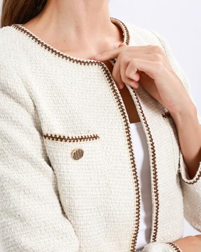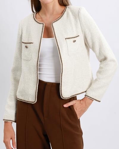 HOT ! Xintianji Womens Open Front Cropped Blazer Jacket - Uncollared Sparkling Yarn Pockets Long Sleeve Business Casual Blazer
