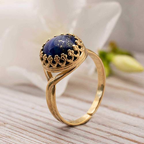 14k Gold Plated Over 925 Sterling Silver Lapis Lazuli Ring - Vintage Style December Birthstone Blue Gemstone Sizable Ring - Classic Handmade Jewelry Gift For Her - Adjustable Dainty Promise Ring 5