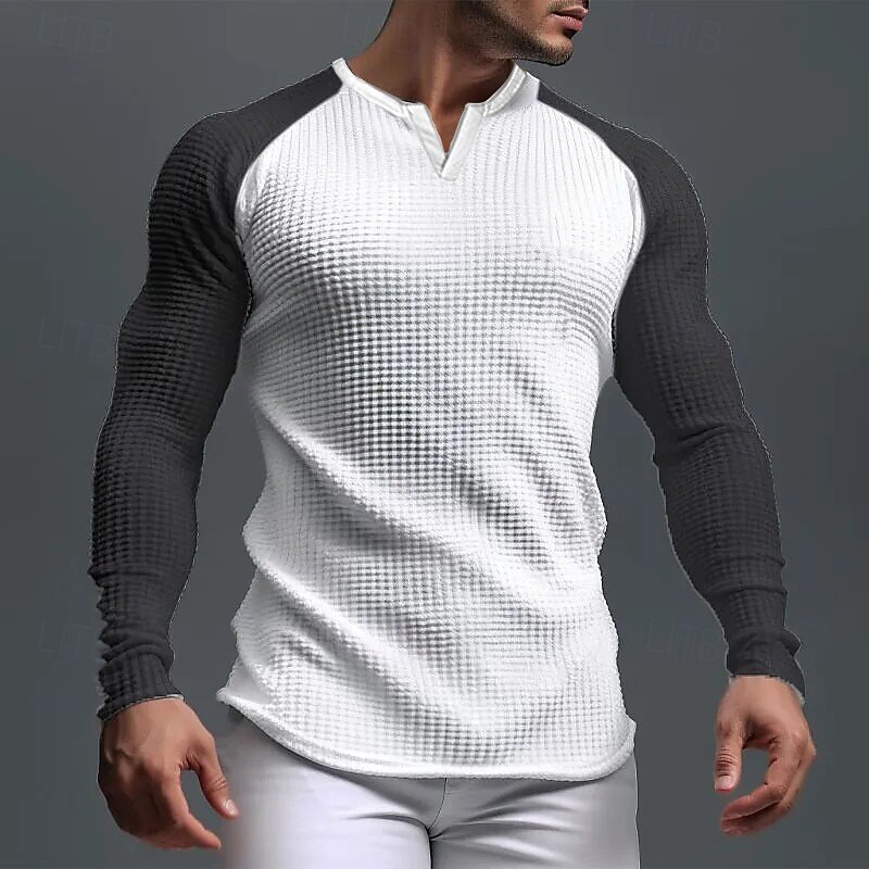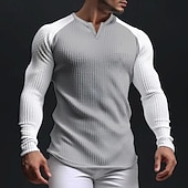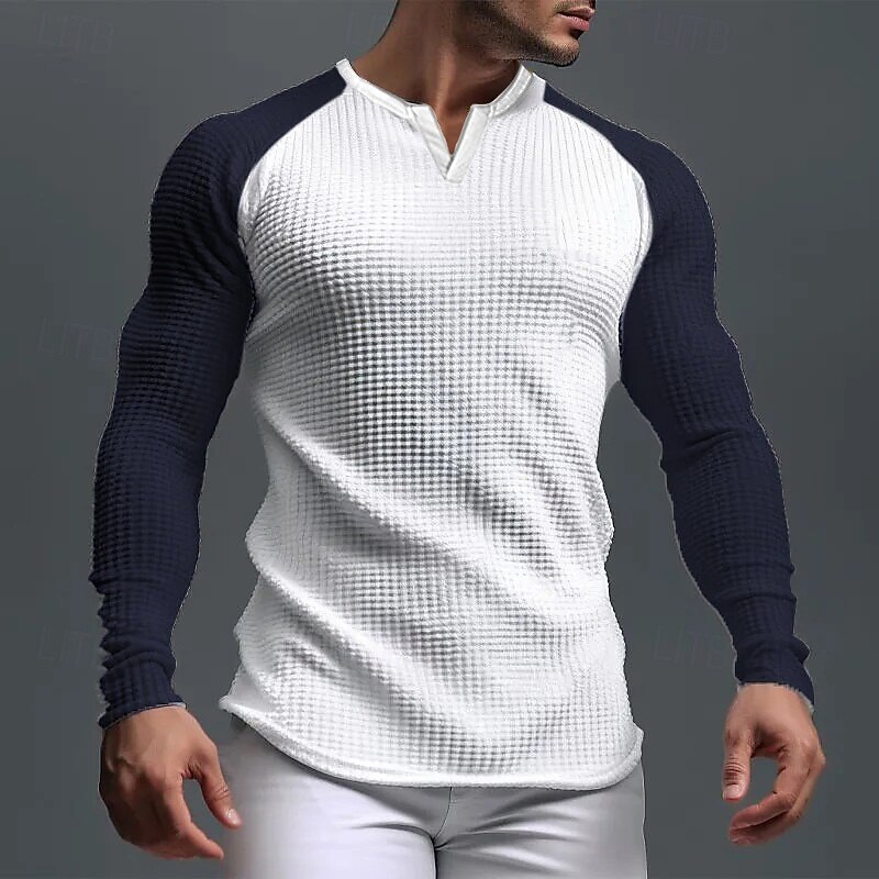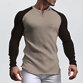 More information about Men's Waffle Tee Waffle Shirt T Shirt Tee Top Long Sleeve V Neck Spring & Fall Color Block Fashion Designer Basic Patchwork Vacation Street Going out Black Navy Blue Khaki Top Tee for Men