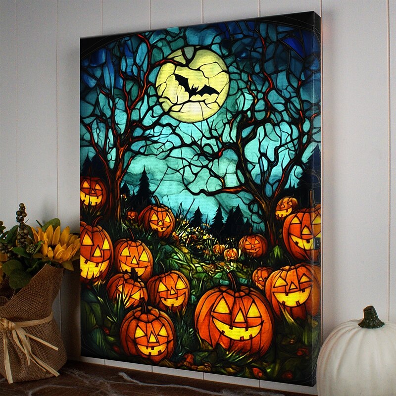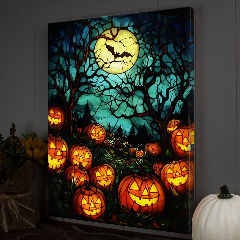 $35.99 - Halloween Pumpkin Clock Night Scene LED Canvas Wall Art - Battery Operated Lighted Wall Decor for 2025 Halloween home decoration light livingroom and bedroom 2025. Shop for cheap Halloween Wall Tapestries online? Buy at lightinthebox.com on sale today!