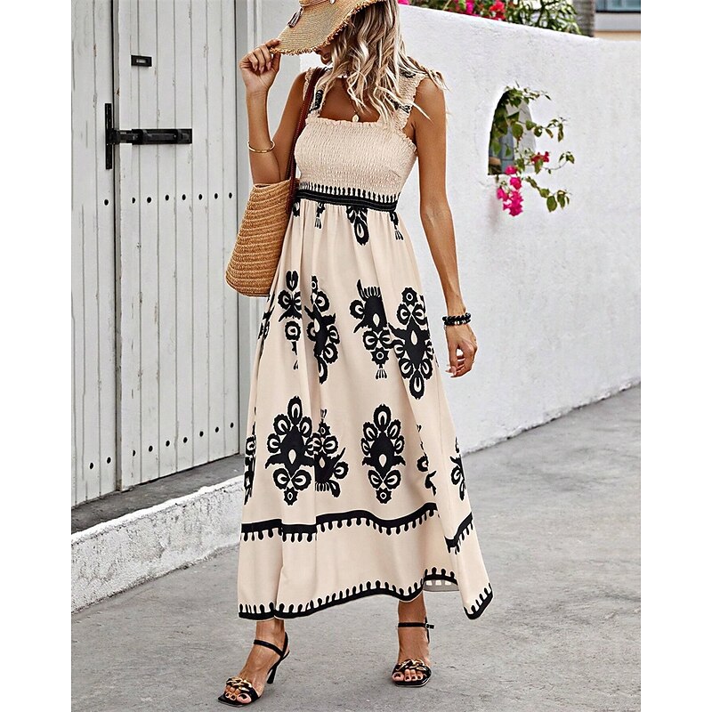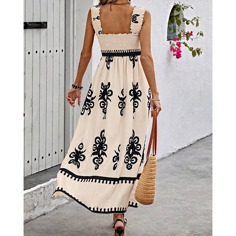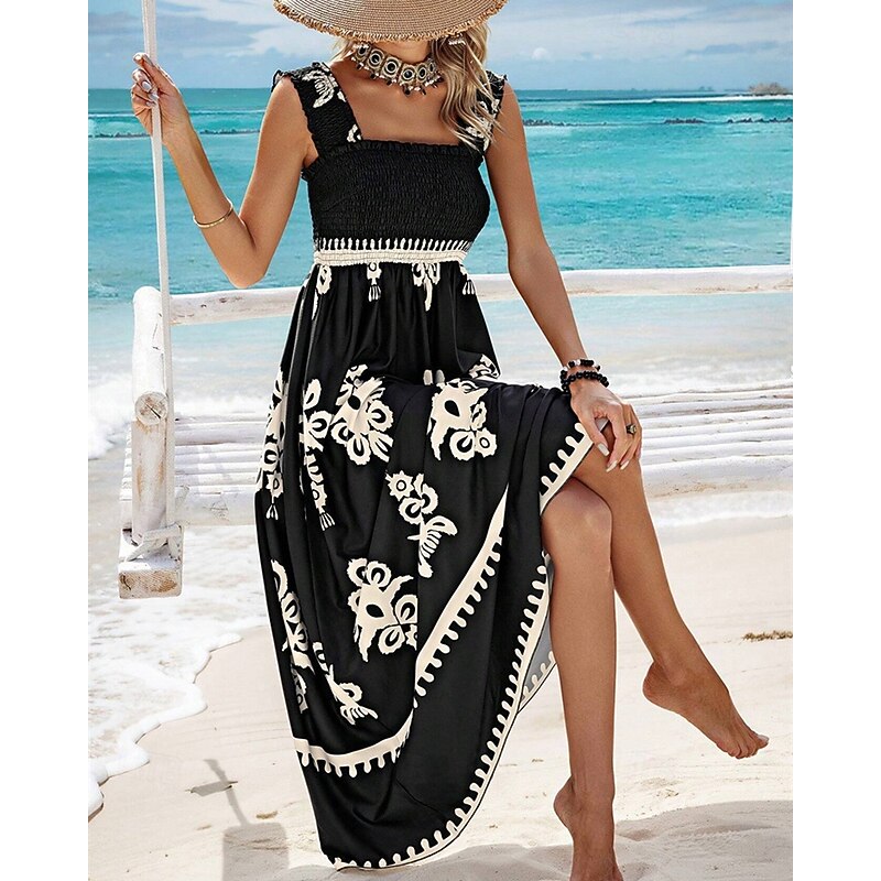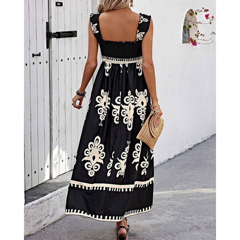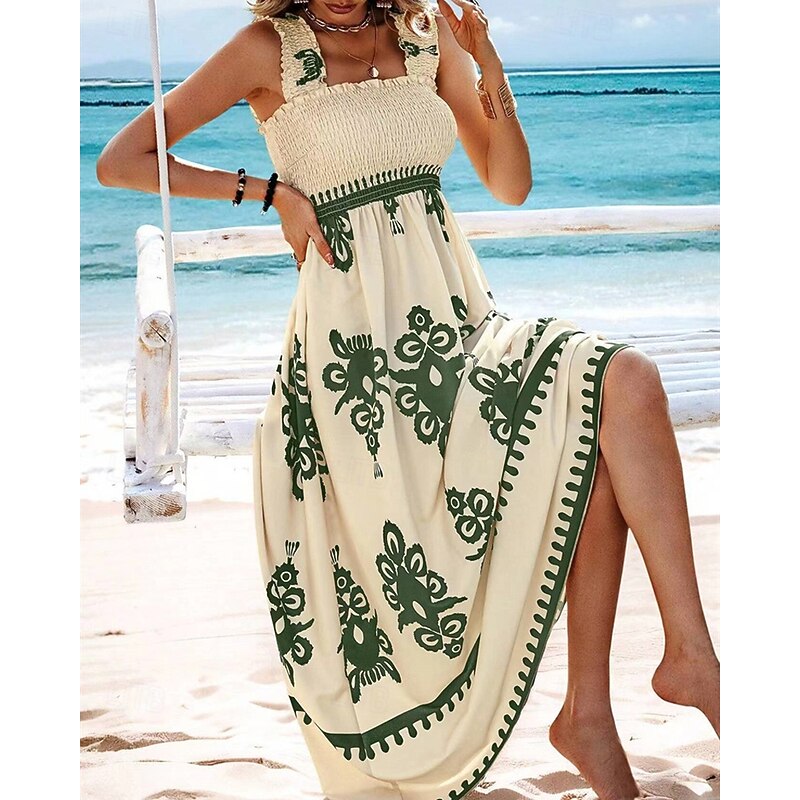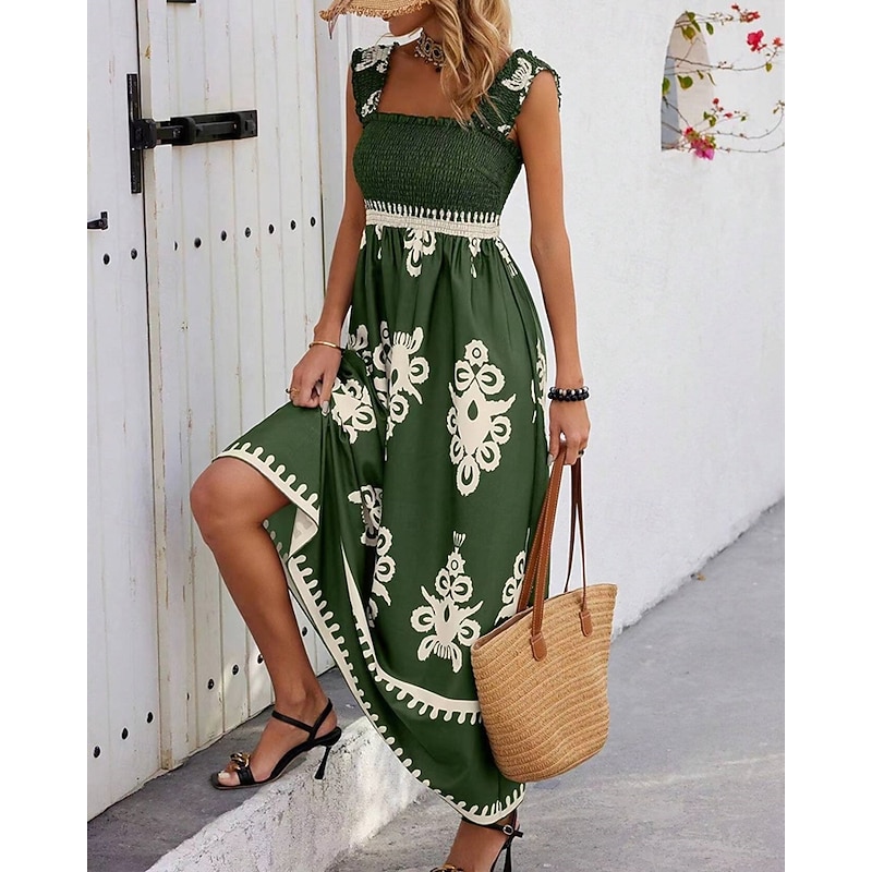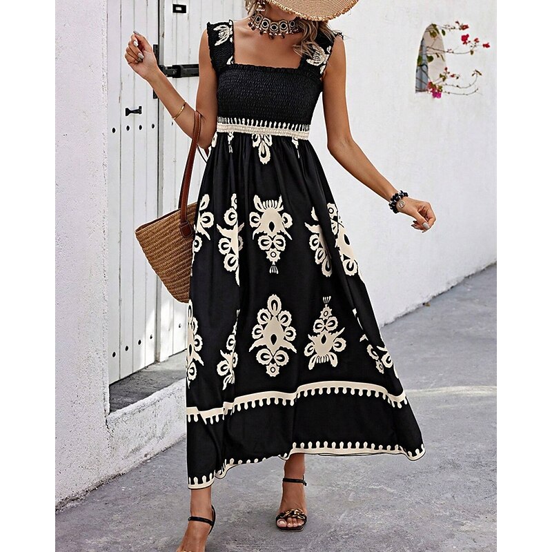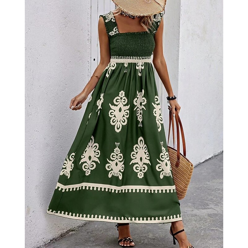Women's Long Dress Maxi Dress Casual Dress A Line Dress Summer Dress Boho Dress Bohemia Hawaiian Stylish Vacation Daily Date Regular Fit Graphic Sleeveless Square Neck Black Pink Red Green Summer 25