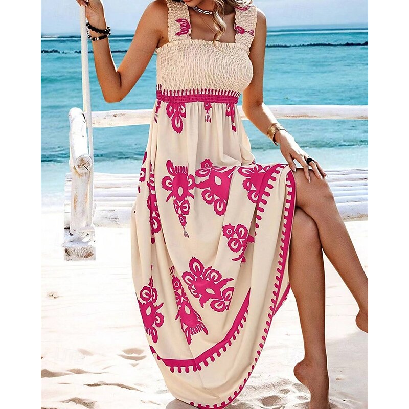 Women's Long Dress Maxi Dress Casual Dress A Line Dress Summer Dress Boho Dress Bohemia Hawaiian Stylish Vacation Daily Date Regular Fit Graphic Sleeveless Square Neck Black Pink Red Green Summer 19