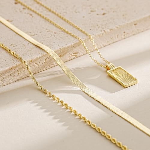 • Layered Gold Necklaces Set:The layered necklace is composed of a snake chain,a twisted rope chain and a tag pendant necklace.As a stacked necklace,elegant and cute,gold layered necklace can match your styles freely,you can wear them together or separately