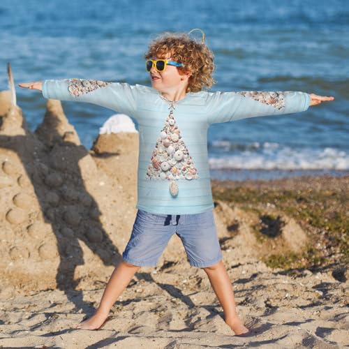 Boys Rash Guard Swim Shirt Long Sleeve UPF+ 50 Sun Shirts Quick Dry Shirt Tropical Christmas Tree Shells for Toddler Kids 6