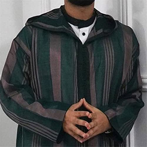 More information about Islamic Kaftan Muslim Robes Men Striped Printing Long Sleeve Loose Robe Men's Hooded Robes Arabia Thobe