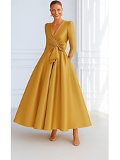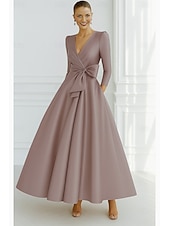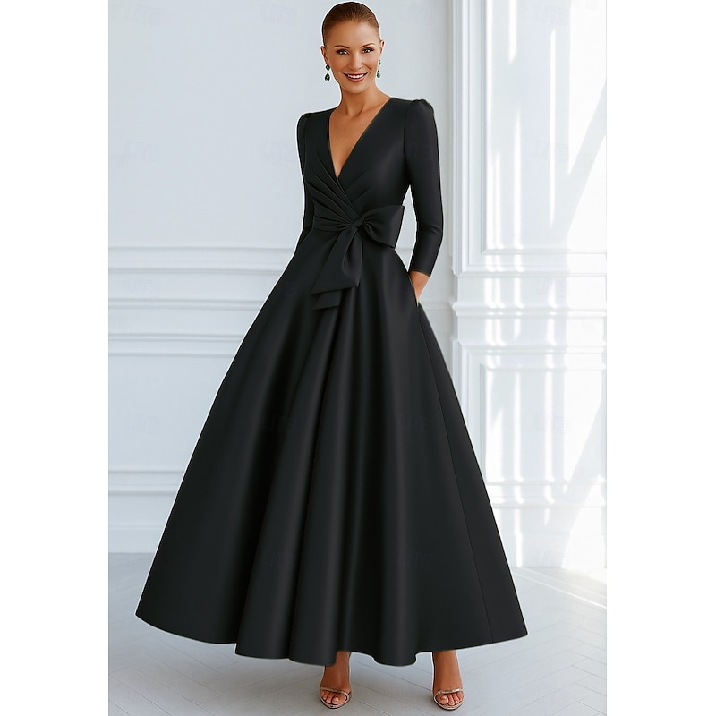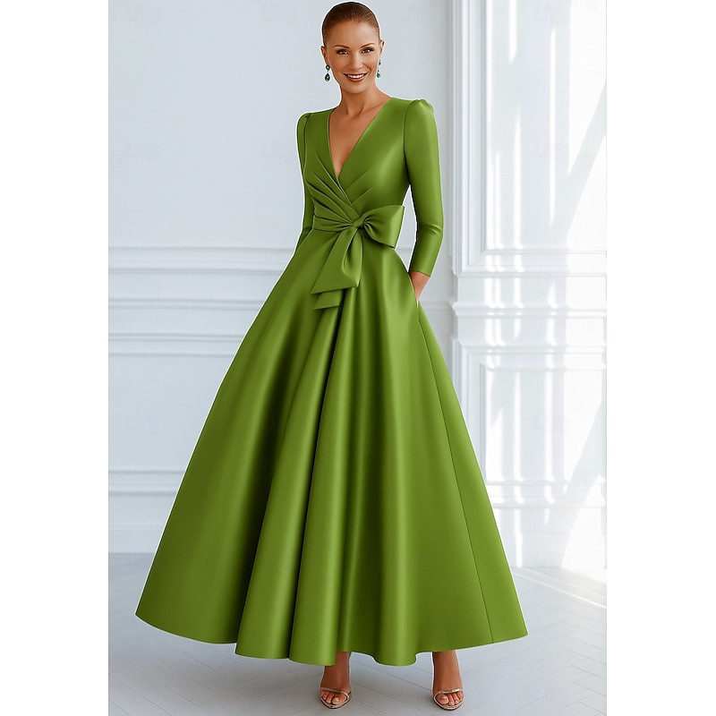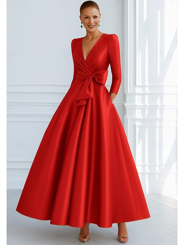 $144.99 - Tie A-Line Evening Gown Elegant Dress Formal Wedding Guest Floor Length 3/4 Length Sleeve V Neck Pocket Stretch Satin with Bow(s) 2025. Shop for cheap A-Line Evening Dresses online? Buy at lightinthebox.com on sale today!