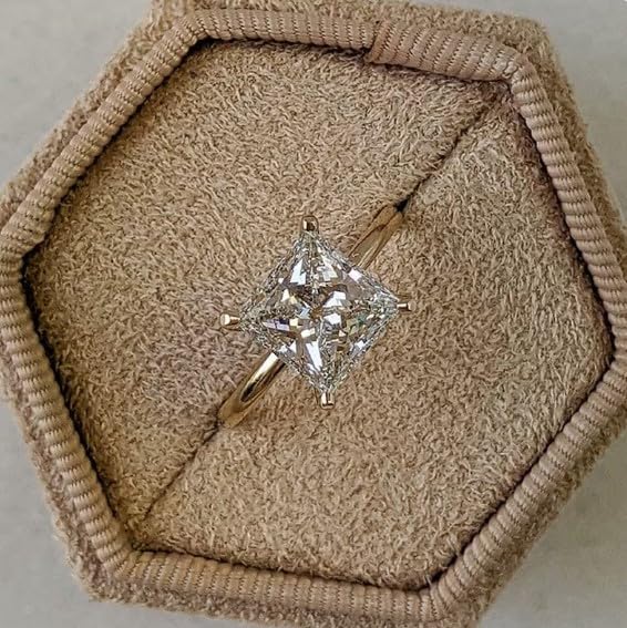 yasu jewels 14k gold plated diamond wedding ring, 2.0 CT Princess Diamond Engagement Ring, Wedding Promise Ring, Simple Hidden Halo Ring, Gifted for her,size 3-12 4