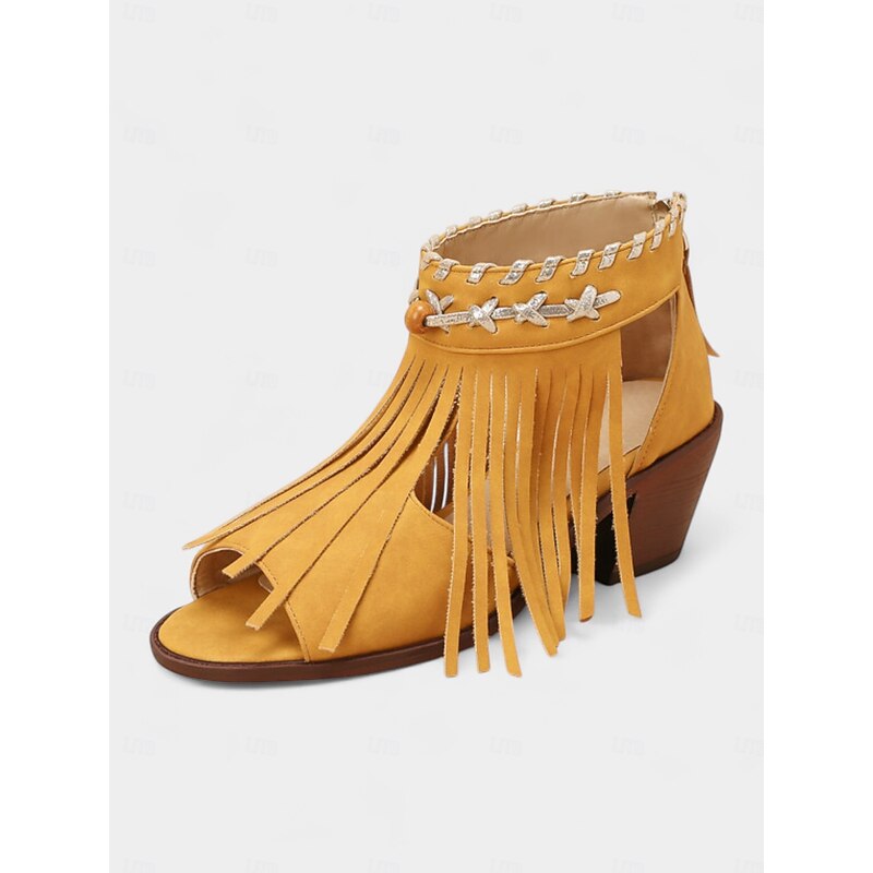 More information about Women's Blue Bohemiao Fringe Peep-Toe Sandals with Block Heels – Western Style Open Toe Summer Shoes for Music Festivals and Casual Outings