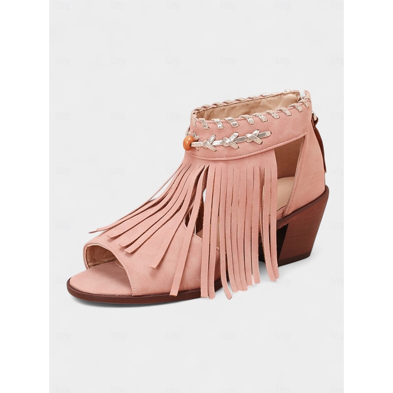 Women's Blue Bohemiao Fringe Peep-Toe Sandals with Block Heels – Western Style Open Toe Summer Shoes for Music Festivals and Casual Outings 1