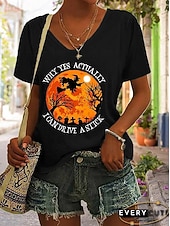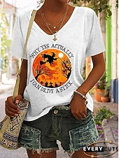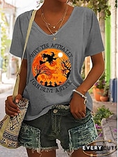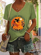 More information about Halloween Women's T shirt Witch Graphic Letter Vintage Stylish Classic Short Sleeve V Neck Regular Tops Daily Print Black White Blue Green Gray Summer Spring