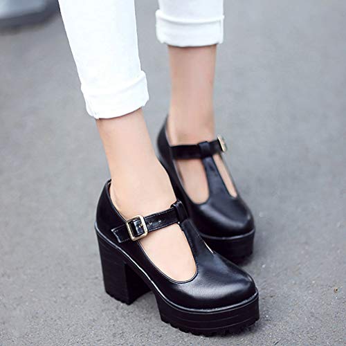 Parisuit Women's Mary Jane Goth Platform Pumps Chunky High Heels T Strap Dress Shoes 5