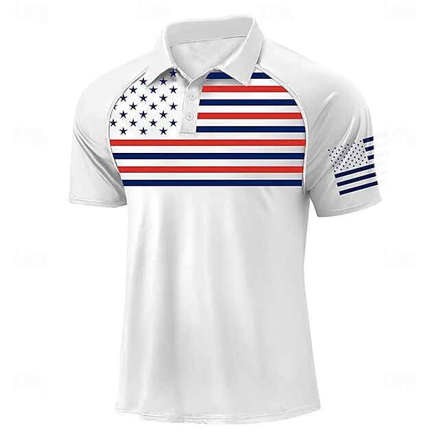 More information about Independence Day Men's American US Flag Polo Short Sleeve Polo Shirts Polo Collar Sporty Casual Daily Casual Festival Buttons 3D Print Raglan Sleeves Summer White Navy Blue Military Green