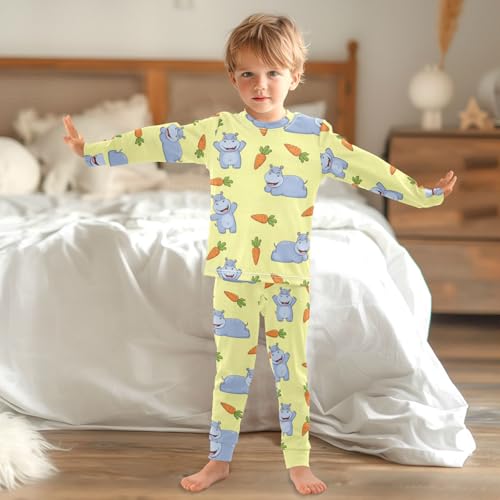 Pajama Sets Long Sleeve Happy Hippo and Carrots Soft Comfy Sleepwear 2 Piece PJS 3-8T 2