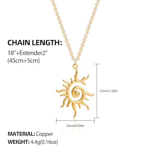 HOT ! SLOONG Gold Charm Necklace for Women, 14K Gold Plated Sun Necklac Spiral Design Pendant Necklace, Elegant Sun Necklaces Jewelry Gift for Her