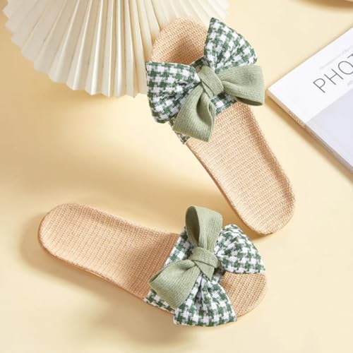 HOT ! Women's Open Toe Slide Slippers with Cute Bow, Summer Linen Sandal Slippers, Slip-on House Shoes Indoor Outdoor Rubber Sole