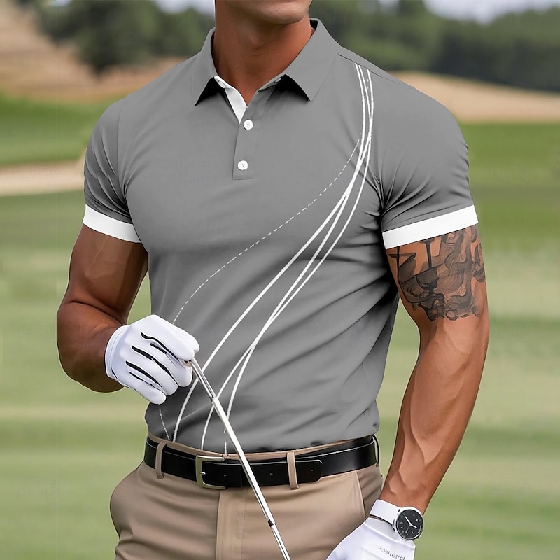 Men's Golf Line Polo Sports Polo Shirts Short Sleeve Polo Shirts Collared Shirts Sportswear Casual Outdoor Athleisure Buttons Summer Black Yellow Red 13