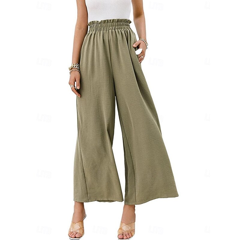 More information about Women's Wide Leg Chinos Fashion Streetwear Full Length High Waist Plain Pocket Elastic Waistband Comfy Soft Comfortable Micro-elastic Outdoor Street Black Army Green Summer Spring Regular Fit