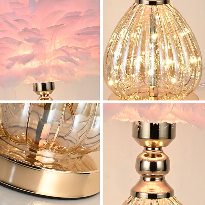 HOT ! Pink Feather Bedside Lamp Luxury Fairy Lights Feather Bedside Lamp Shade Feather Table Lamp Desk Lampshade for Living Room Bedroom Dining Room