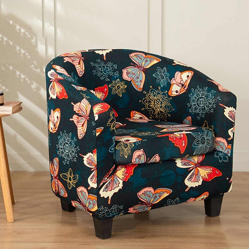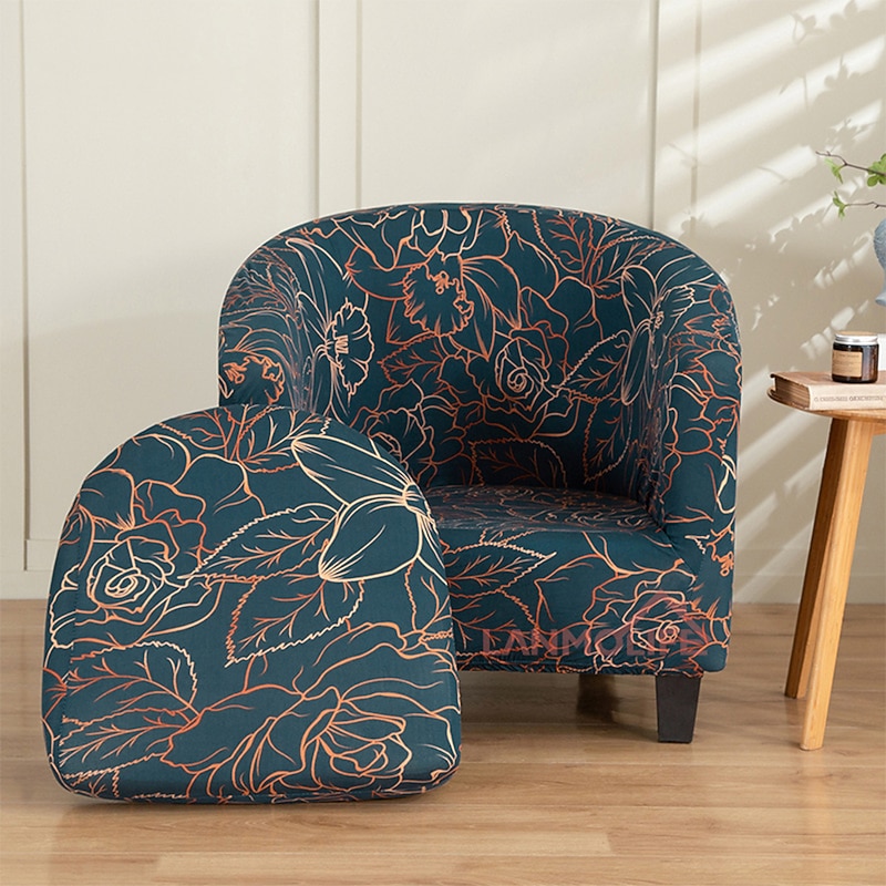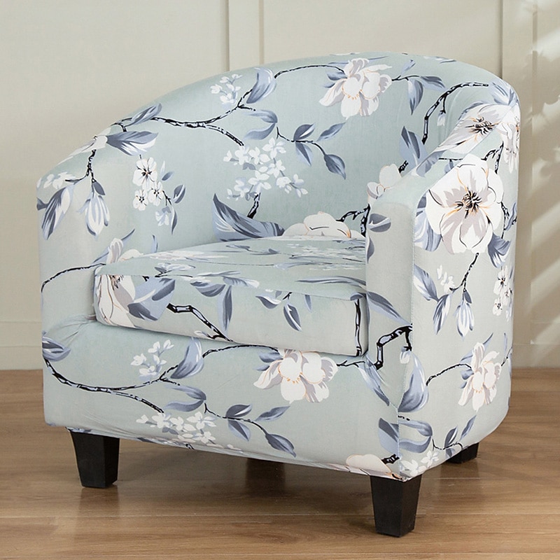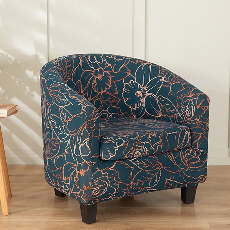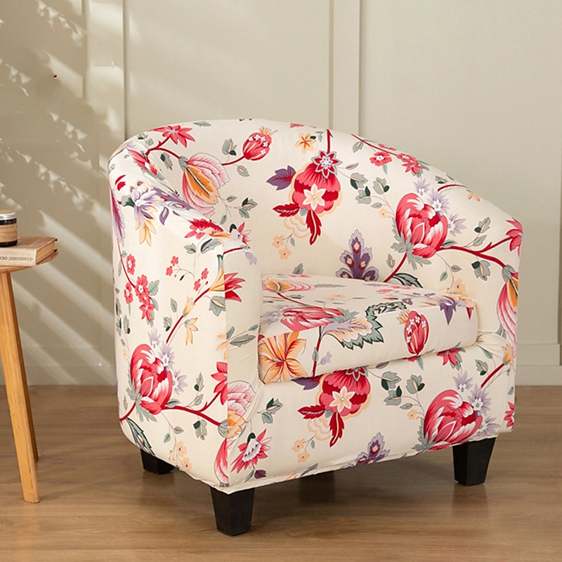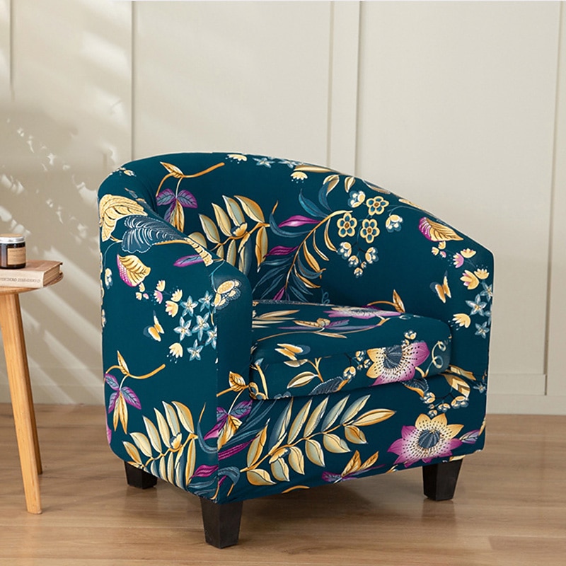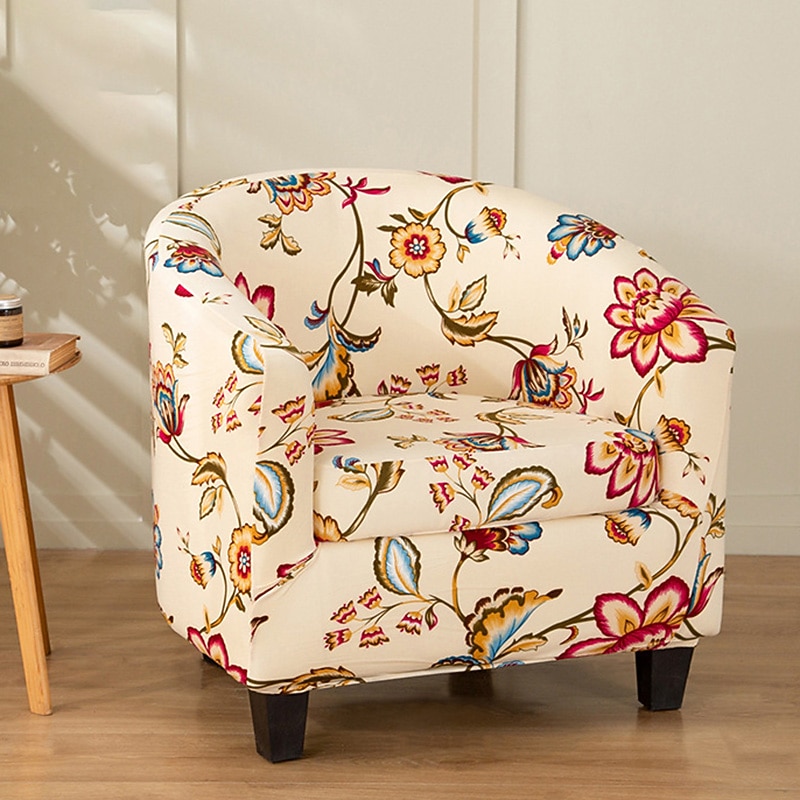 Floral Printed Club Chair Barrel Chair Slipcover Stretch Armchair Covers 1-Piece Club Tub Chair Covers Sofa Cover Couch Furniture Protector Cover Spandex Couch Covers for Living Room