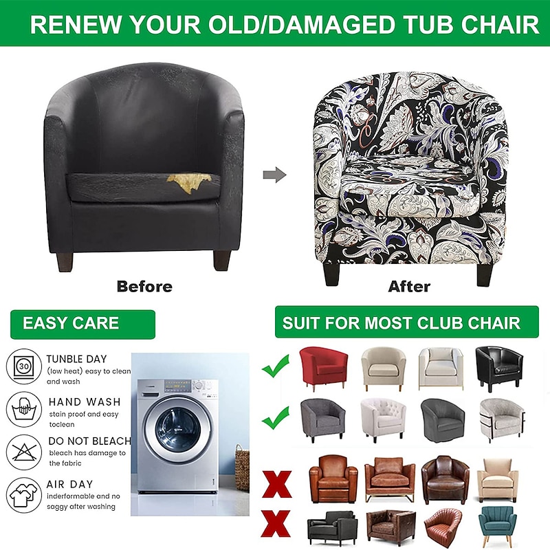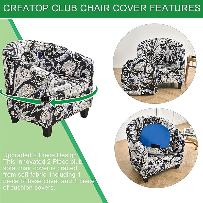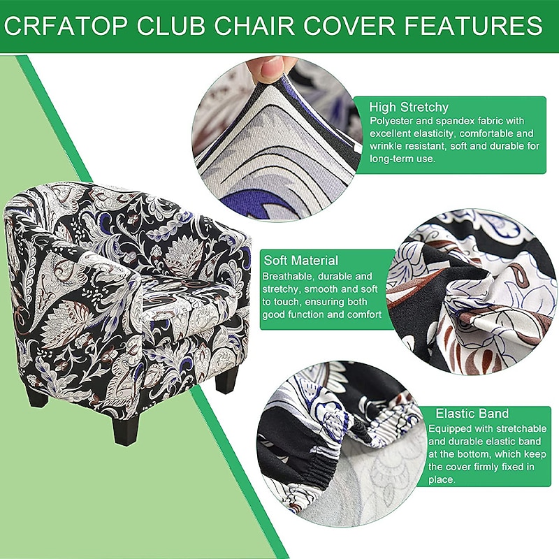 More information about Floral Printed Club Chair Barrel Chair Slipcover Stretch Armchair Covers 1-Piece Club Tub Chair Covers Sofa Cover Couch Furniture Protector Cover Spandex Couch Covers for Living Room