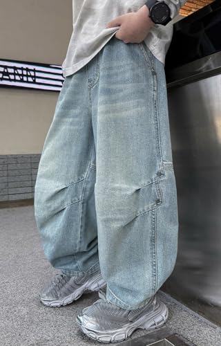 Stylish Boys Baggy Jeans Straight Leg Design with Pockets Elastic Waist Comfortable Distressed Ripped Denim Pants 6
