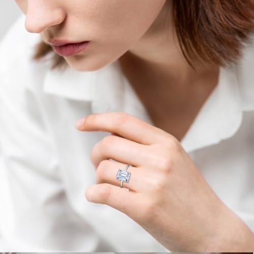 4ct Cubic Zirconia Engagement Rings For Women Promise Ring 14K Gold/Silver Plated Sterling Silver Emerald Cut CZ Wedding Band Size 5-10 6