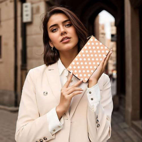 Wallet Women - Peach Polka Dot Print (A) Leather Wallet Large Capacity Bifold Long Ladies Wallets With Zipper 1