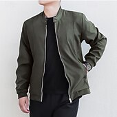 More information about Men's Lightweight Jacket Casual Jacket Vacation Daily Breathable Pocket Spring Fall Plain Fashion Classic Stand Collar Regular Black Army Green Jacket