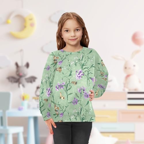 HOT ! JUNZAN Cute Phlox Sage Green Kids Girls Sweatshirts Hoodies Crewneck Sweatshirt With Hoodie Sports 4T