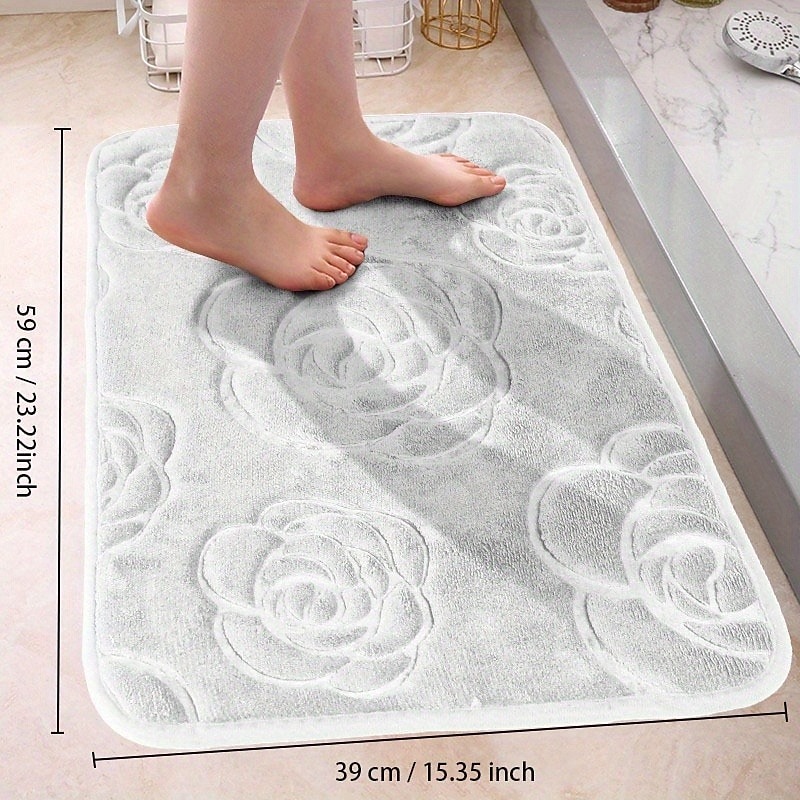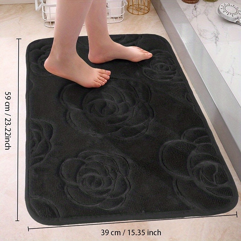 1pc Bath Rugs, Rose Flower Patterned Bathroom Bath Mat Flannel Non-slip Carpet Bathtub Floor Rug Shower Room Doormat Memory Foam Mat Washable Carpet