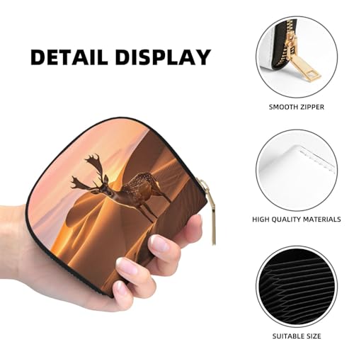 HOT ! Desert Dunes and Deer Print Credit Card Holder, PU Leather Small Card Bag Wallets with Zipper for Women Men id Business Card