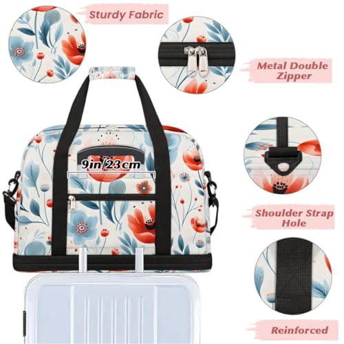 HOT ! Delicate Print Retro Flowers Travel Duffle Bag, Collapsible Travel Bag Sports Gym Bag With Shoes Compartment Weekender Bag Overnight Bag For Women Men