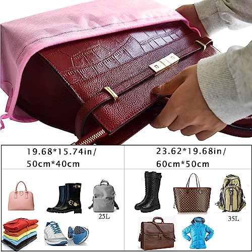 8PCS Dust Bags for Handbags Jumbo Travel Shoe Bags Purses Organizers Storage Bags with Rope Clear Window Dustproof Drawstring Bag Storage Pouch for Men and Women - Pink, 19.7 x 15.7 in 5