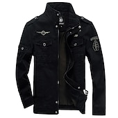 More information about Men's Bomber Jacket Varsity Jacket Tactical Jacket Casual Wearable Multi Pocket Spring Fall Winter Military Military Style Stand Collar Regular Cotton Regular Fit Black Army Green Khaki Jacket