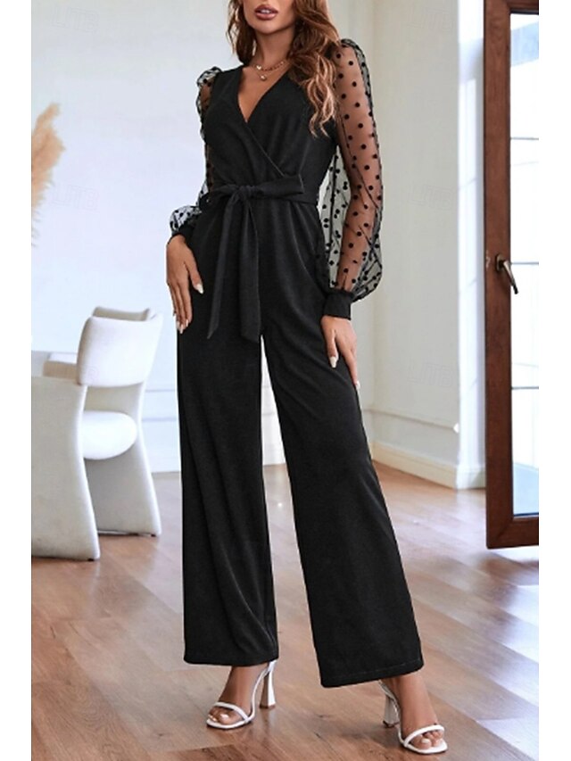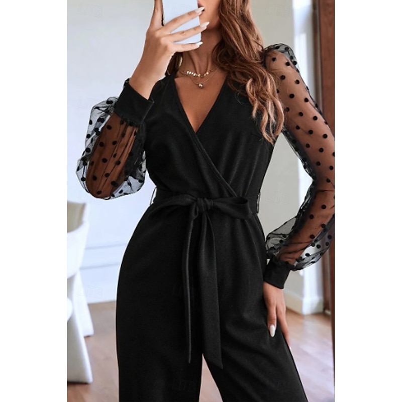 More information about Women's Normal Jumpsuit Streetwear Solid Color Long Sleeve V Neck Lace Patchwork Going out Weekend Regular Fit Black Summer