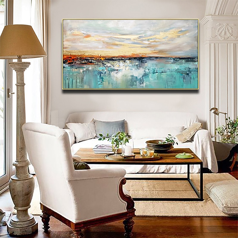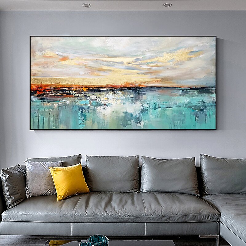 More information about Handmade Oil Painting Canvas Wall Art Decoration Landscape Lake Sky Abstract for Home Decor Rolled Frameless Unstretched Painting