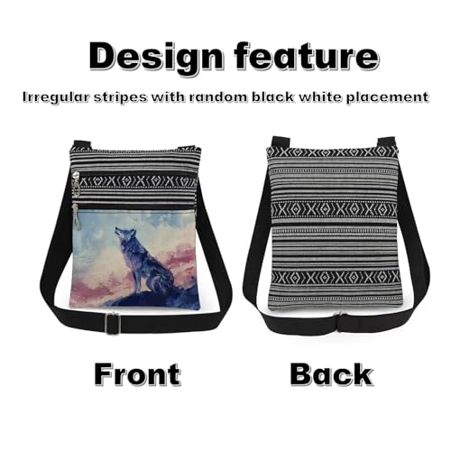 HOT ! Wolf Art Print Crossbody Bag Christmas Birthday Wolf Gift for Women & Teens Travel Adjustable Shoulder Strap Messenger Bag Men Stylish Purse