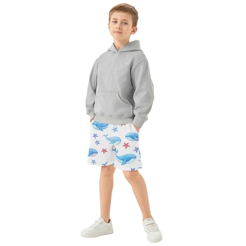 J JOYSAY Starfish Whale Blue Boys Athletic Shorts Kids Youth Casual Shotrs with Elastic Waistband Pockets 6