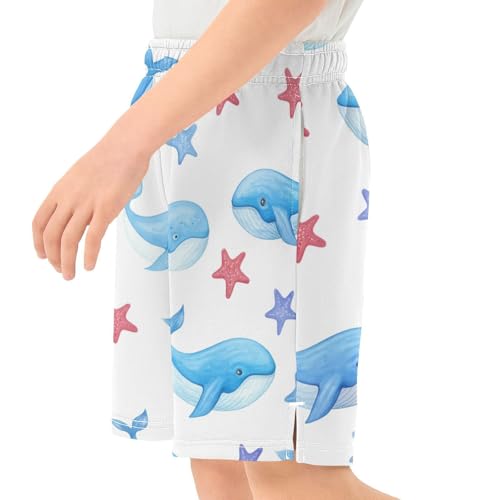 J JOYSAY Starfish Whale Blue Boys Athletic Shorts Kids Youth Casual Shotrs with Elastic Waistband Pockets 4