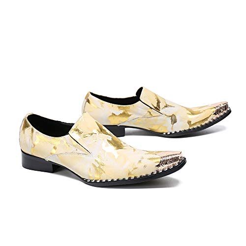 Oxford for Men Work Shoes Slip On StyleGenuine Leather Block Heel Retro Iron Pointed Toe Embossed Casual Business 6
