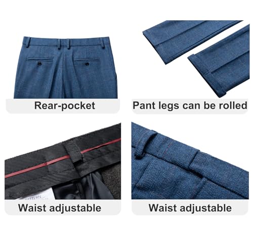SevenBoy Men's Dress Pants Tweed Plaid Classic Fit Siut Separates Slim Stylish Wool Casual Business Suit Pants 3