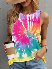 More information about Women's Camisole Tank Top Tie Dye Vest Black Sleeveless Crew Neck Casual Vacation Stylish Summer