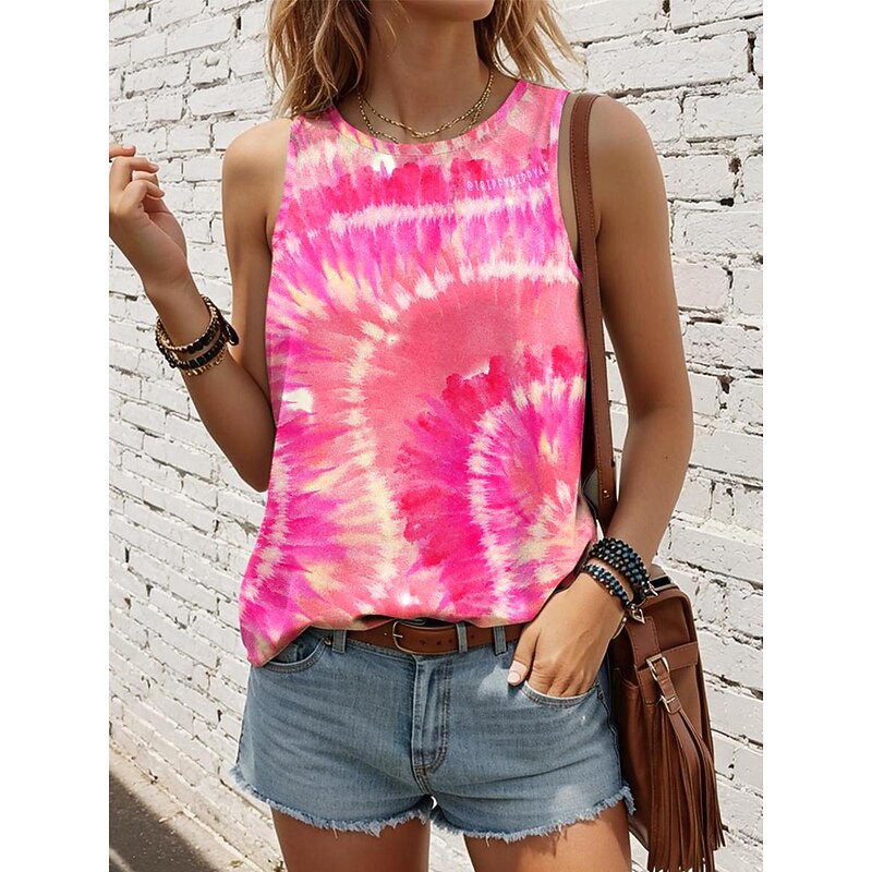 HOT ! Women's Camisole Tank Top Tie Dye Vest Black Sleeveless Crew Neck Casual Vacation Stylish Summer