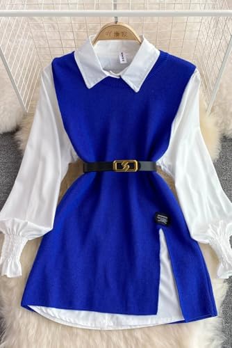 More information about LIXINGHEITANG Spring and Casual Medium Long Waist Wool Dress Plaid Shirt Sweater Vest Women's Suit Knitted Two-piece Sets