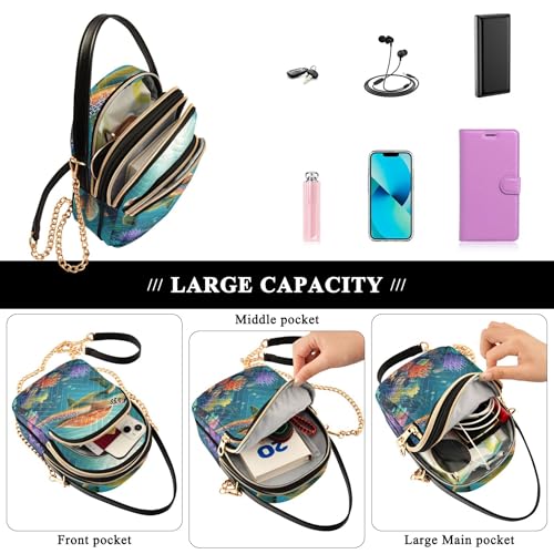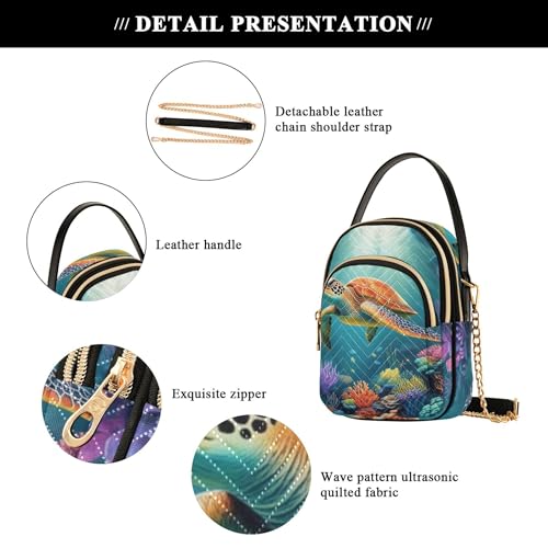 HOT ! Woman Shoulder Handbag Underwater Ocean Scene Sea Turtle Quilted Phone Wallet Chain Strap Purse Cute Designer Clutch Ladies Zipper Tote, 5.9" × 8.3" × 3.1"