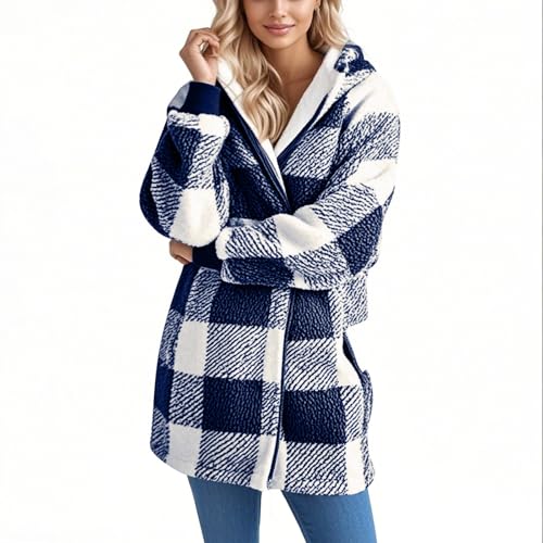 HOT ! Zip Up Flannel Jacket Women Plaid Shacket Long Sleeve Sherpa Fleece Jacket with Pockets Fall Coats Winter Clothing