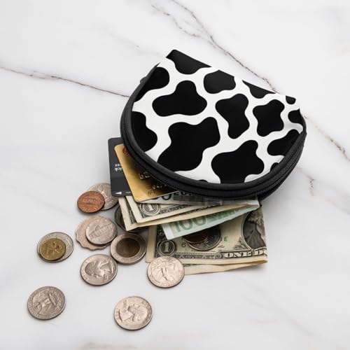 Portable Coin Purse Black Cow Skin Print Mini Zippered Money Pouch Card Holder 5