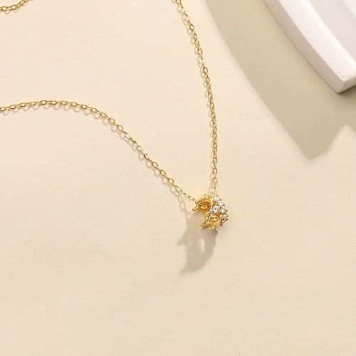 Princess Crown Charm Necklace for Women 925 Sterling Silver Round CZ Queen Dainty Pendant Luck Necklace 14K Gold Plated Royal Delicate Crystal Choker Cute to Daughter Mother Wedding Birthday Jewelry 6