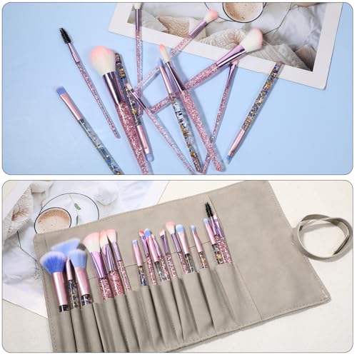 Makeup Brush Pouch Makeup Brush Roll Makeup Brush Organizer Makeup Brush Holder Travel Makeup Brush Bag Pouch Makeup Pouches for Women Cosmetic Brushes Makeup Brush Case Roll-Up Pu Leather 3